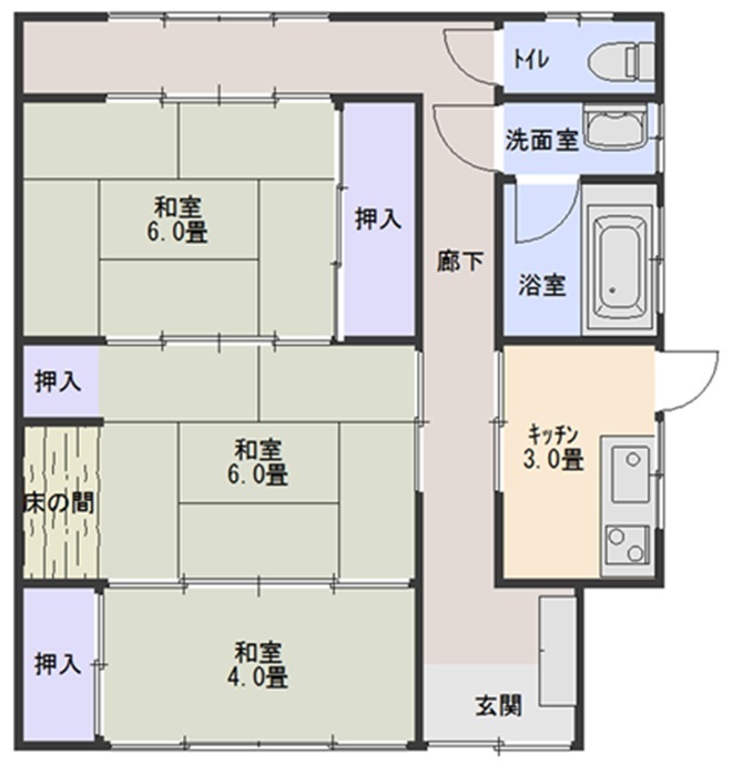 | 間取り | 和4、和6、和6、台所4、 浴室、洗面、トイレ |